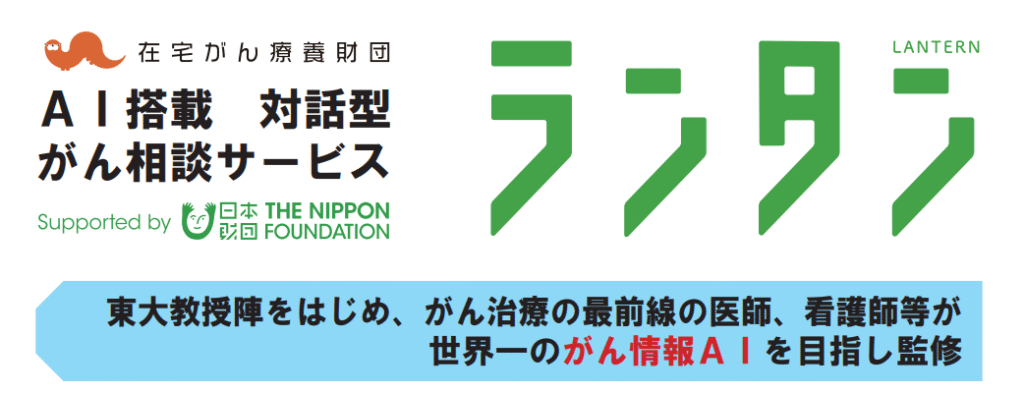 「ランタン」は、一般財団法人在宅がん療養財団が開発・運営するサービスで、患者さんやご家族が抱える疑問に、24時間365日、スマートフォンやパソコンから気軽に相談できる仕組みを提供しています。