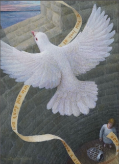 小鳥や女の子が描かれた優しい絵は見ているだけで気持ちが和む、温かな色合いの作品に仕上がっています。